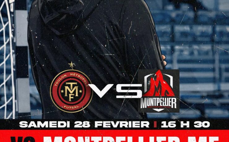 MATCH À DOMICILE Samedi 28 février 16h30 Palais des Sports Toulon Métropole Futsal Montpellier MF Nos joueurs vous attendent nombreux pour ce rendez-vous à domicile Ambiance, intensité et spectacle garantis Entrée 5€ Venez en famille, entre amis et soutenez le TMF !