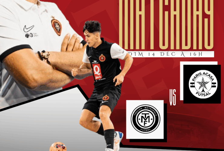 Le TMF s’impose pour son dernier match de l’année Published on: 21 décembre 2025 Published in: D1 VICTOIRE À DOMICILE ! Toulon Métropole Futsal – Paris ACASA Dans un Palais des Sports en feu, nos Rouge & Noir s’imposent pour le dernier match de l’année Ouverture du score signée Gustavo 1-1 à la mi-temps Doublé de Pupa en seconde période pour faire la différence ! Une superbe performance collective devant notre public Merci à tous : joueurs, staff, bénévoles et supporters pour cette année riche en émotions. Nous vous souhaitons à tous une excellente trêve ! Rendez-vous le 21 février pour la reprise à l’extérieur, puis le 28 février à domicile au Palais des Sports. Ensemble, plus forts ! Post navigation Previous Article Previous Article Tous au Palais des sports Next Article Next Article Goûter de Noêl pour nos petits champions Vous aimerez aussi Tous au Palais des sports D1 Déplacement à Toulouse pour la 9ème journée D1 Leave a comment Annuler la réponse Save my name, email, and website in this browser for the next time I comment.